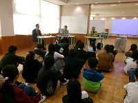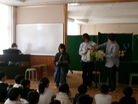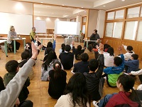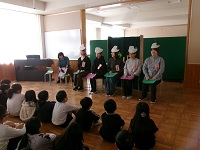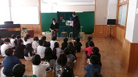 また、1年生には八郷こども園からお客さんが来ました。年長組の皆さんが八郷西小学校との交流会に来てくれました。