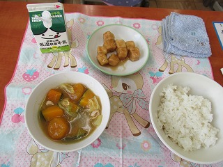 本日は冬至。学校の給食にもかぼちゃが入っていました。