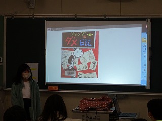 国語の時間に、図書室にあるお気に入りの一冊を紹介しました。