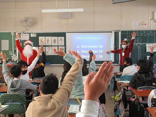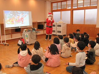 そして、最後は、1,2年生との英語活動!!サンタクロースと英語でじゃんけんをすることやちょっぴりおかしなサンタクロースのお話を聞いたりして、英語を声に出して楽しみました。