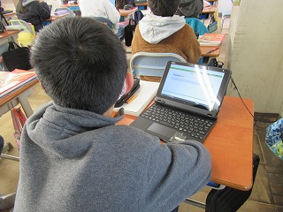 国語、算数で、課題のある基礎的な内容について、確実に定着させることを目的として、三重県教育委員会の学力向上推進プロジェクトチームから5年生の児童のタブレットに毎日1問ずつ基礎的な問題が配信されています。