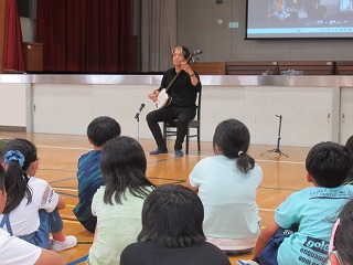 講演の終盤で、三味線の演奏もあり、子どもたちはぐっと引き寄せられるように聴いていました。