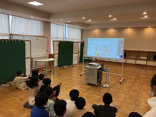 11月30日(水)八郷小学校とお互いが作った防災マップの交流をしました。今回はZOOMを使って遠隔で交流しました。八郷小はマップをタブレットを使って作成しており、地図の位置が具体的であったり、遠くからでも鮮明に分かりました。発表し終えたあとに、感想を交換しました。八郷小からは「写真が2重に貼ってあってすごい」「マップが手作りですごい」という感想をもらいました。八郷西小からは「タブレットで作ってあってとても分かりやすい」という感想を伝えました。
