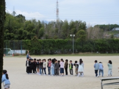 』を合言葉に担任の先生の指示のもと運動場に避難しました。6年生、5年生の速やかに避難する様子は下の学年のお手本となるものでした。今後は火災以外を想定した訓練も実施し、子どもたちに自ら安全を守る大切さを指導していきます。