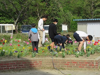 栽培委員会の子どもたちは、星形花壇の整備。今、こうしてきれいに花を咲かせているのは、昨年度末の掲示・栽培委員会の活動のおかげです。