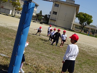 今日は初めて運動場に出て、運動場の使い方を学習しました。