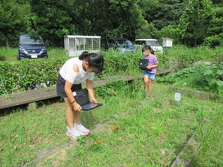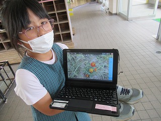 3年生がタブレットをもって、学級園へ向かっていったので、何だろうと思いついていきました。