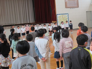 全校児童で歌う校歌は久しぶりでしたが、2~6年生の子どもたちが元気いっぱい歌い、その歌声を体育館中に響きわたらせ、1年生の入学をお祝いしていました。