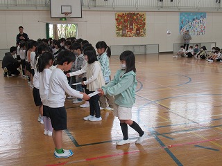 短い期間に準備をし、6年生が司会進行を務めてくれました。そして、代表の6年生からお祝いのことばが1年生の子どもたちへ贈られ、とても温かい会となりました。