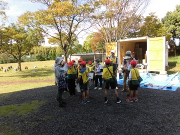地域の方にお世話になり、防災倉庫に備蓄されているものを知ったり、各地区の災害時の備えを学んだりしました。