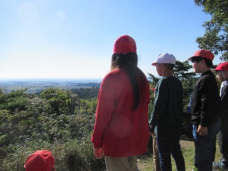 二日目の早朝、みんなで展望台まで登りました。とてもいい天気で、到着すると自然と「わあ~きれい!!」の歓声があがっていました。
