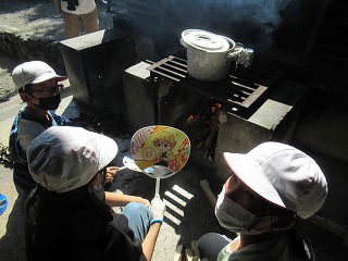最後の活動は、昼食づくり。今回は空き缶でご飯を炊きました。まきで火をおこすことに苦戦していましたが、出来上がったご飯を食べるときには、みんな、満面の笑顔でした。二日間、本当によく頑張り、よく楽しんでいました。