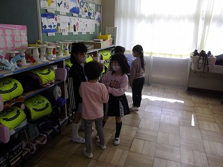 1年生が八郷西保育園の年長さんと交流会を開きました。