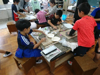 3年生はランプシェードづくりに挑戦!型抜きを使って作る子、カップなどの形に合わせて作る子・・・それぞれが思い思いに作りました。