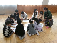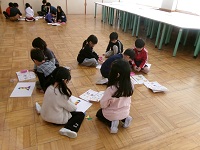 また、1年生には八郷こども園からお客さんが来ました。年長組の皆さんが八郷西小学校との交流会に来てくれました。