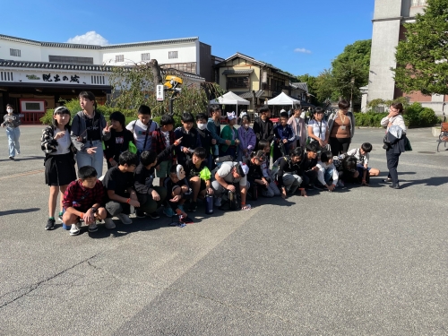 予定より少し早く旅館を出発して、太秦映画村に到着しました。子どもたちは元気に班別活動に入りました。