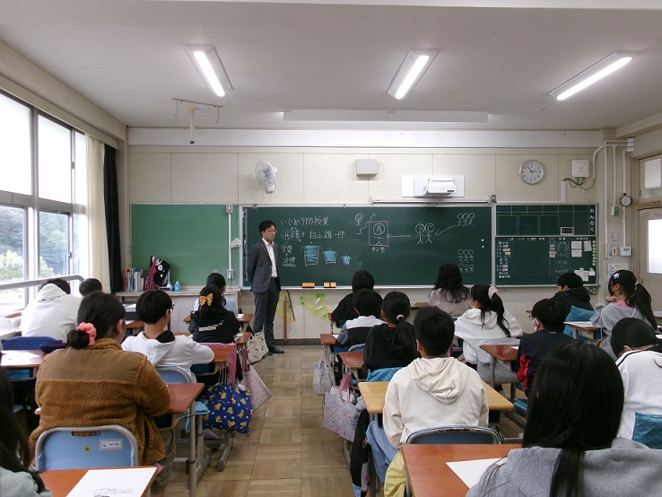 授業では、実際に起きたいじめの事例をもとに、いじめとはどんなものなのか、なぜだめなのか、お話をしていただきました。