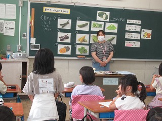 三重北小学校の栄養職員 小林先生に来ていただき、2年生が食育「夏野菜の良さを知ろう」の学習をしました。