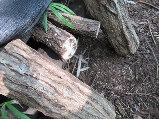 3年生の植えたブルーベリーに実が実っており、4年生が昨年菌うちをしたシイタケの原木も順調に菌糸を伸ばしている様子でした。