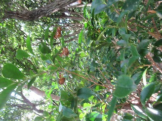 もちろん、セミたちは、学校林のなかでも勢いよく鳴いています。背の低い木々の葉の裏には、セミの抜け殻をあちこちで見つけることができました。