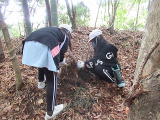 3,4年生の子どもたちが四日市大学の竹林でタケノコ堀りを体験しました。