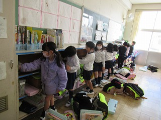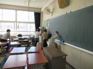 ロッカーや机の中もまずは整理整頓からして、きれいに拭き掃除をしていました。