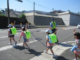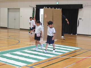 低学年では、道路の渡り方を実際に行ってみて、学びました。