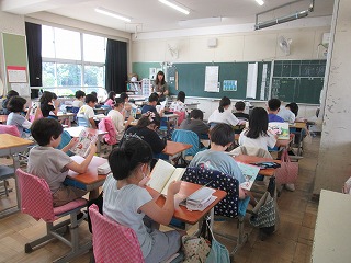 今日(6/13)は、2年生で図書ボランティアの方による読み聞かせがありました。