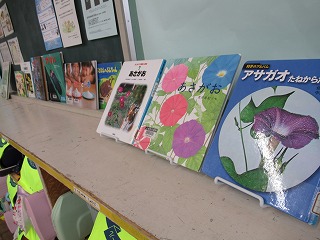 今年から、各教室でも、その時期その時期に合わせた本を紹介しています。これは、現在の1年生の教室です。
