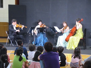 はじまると、体育館に弦楽器の音色が響き渡り、そこに集まった全校児童が、みんな、その美しい音色に耳を傾け、静まり返っていました。