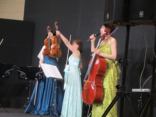 モーツァルトやビバルディの曲を演奏していただいた後、演奏に使っている弦楽器の紹介をしていただきました。バイオリンとビオラの違いも比べて見せていただきました。