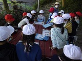 八郷西小学校の学校林で、三重北小学校1年生との交流会を行いました。