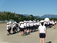 どうか運動会が予定通りできますように。 職場体験の中学生が、大玉運びのアドバイスしてくれました。