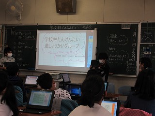 3年生は、総合「学校林たんけんたい」の発表でした。子どもたち自身がタブレットの活用を工夫し、グループで役割分担をして発表をしていました。