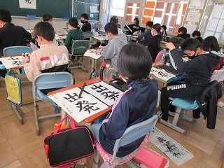 3学期2日目、今日は新年試筆に全校で取り組みました。