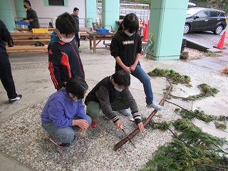 のこぎりで木を切ることには、少々悪戦苦闘!!