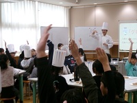 日本では料理人、パティシエ、生産者の皆さんが、小学校でボランティアで授業をしてくださる取り組みが進められています。