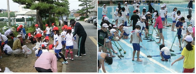 6月1日(日)好天の下、予定通り実施しました。前回が雨天中止になった分、今回はいつもより多めだったようです。子どもの参加も多く、最後に「ふれあいパスポート」にシールを貼ってもらっていました。暑い中、各地区で参加いただいた皆様、本当にありがとうございました。 |