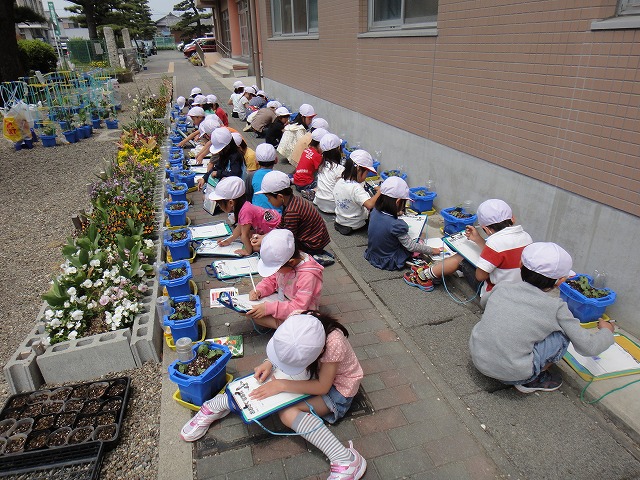 3時間目に、あさがおの観察をしました。先週からもう芽が出てきています。5つ植えた種の5つとも芽が出ている子どももいます。あさがおのお世話をがんばって、きれいな花を咲かせてくださいね。 |