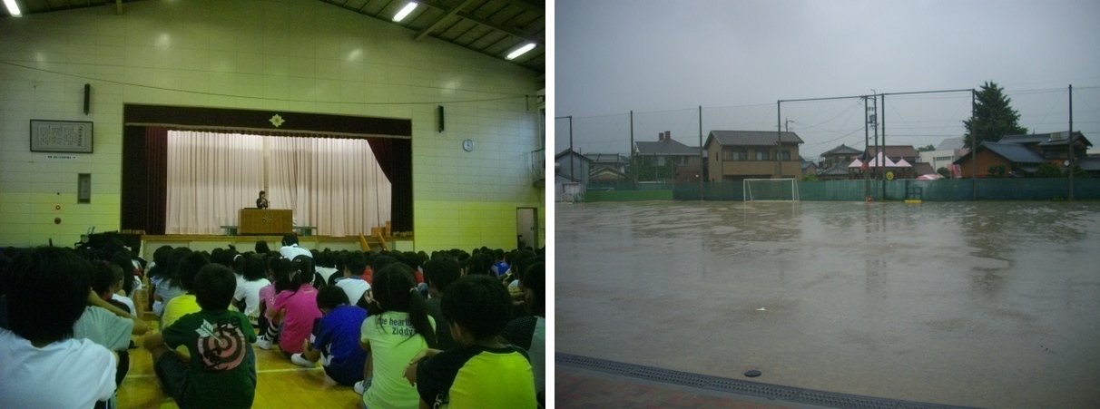 この日は、1学期終業式の日。体育館へ入って、校長先生や生活指導の先生から、お話を聞きました。ちょうどこのとき、雷が時折なり、雨が激しく体育館の屋根を打ち付けていました。その後、それぞれの教室へもどり、学活を行いました。あるクラスでは、夏休みの宿題や生活のお話があり、また、あるクラスでは、お楽しみ会の続きの「怖い話」があり、また、あるクラスでは、夏休みの計画のスピーチがあり、・・・と多彩な内容でした。明日からは、44日間の夏休みが始まります。健康や安全に気をつけて、有意義な夏休みを過ごしてほしいと思います。また、2学期、元気な顔を見せてほしいと願っています。