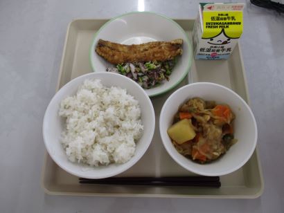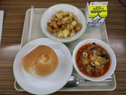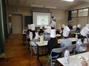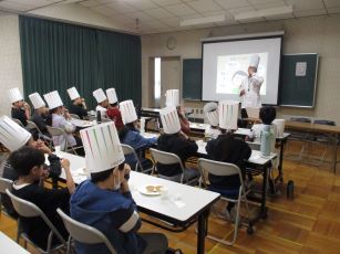 子どもたちはとても楽しかったようで、給食の時間もシェフの帽子をかぶって食べていました。