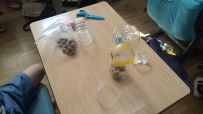 五味(塩味、酸味、苦味、甘味、うま味)の試食をしながら、子どもたちは「しょっぱいな。」「すっぱい~」「苦い~」などといいながらも、それぞれの味をしっかりと感じていました。