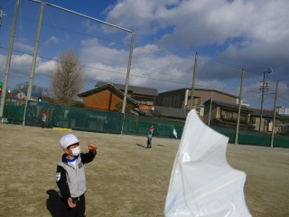 上手にあげられる子たちが増えてきました。また、持ち帰りましたら、あげられる場所を見つけて、凧あげに挑戦してみてください。