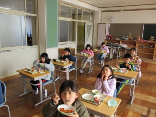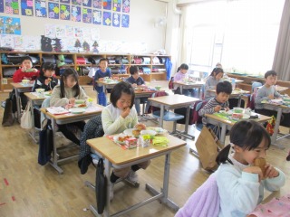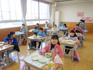 今日の給食はクリスマスメニューでした。朝から、「校長先生、今日はなにの給食か知ってる?今日はケーキがあるんだよ。」と教えてくれる子もいました。