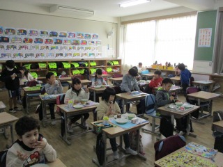 給食の途中でしたが、そうっと、ケーキの箱を開け、くんくん…とにおいをかいている子もいました。「先生~、おいしそうなにおいだよ~」と、うれしそうでした。