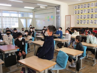 ★写真は4年A組です。しっかりと話を聞き、感想も一人ひとりが話すことができました。