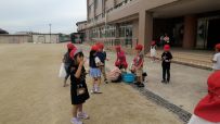 生活科の授業でシャボン玉を作りました。自分で作ったストローやモールの輪、家からもってきたラップの芯を使って、大きなシャボン玉ができました。