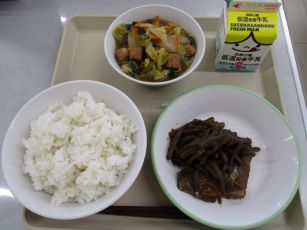 今日は、旬のさばをみそ味の煮つけにしました。さばには血液をサラサラにし脳の働きをよくする脂がたくさんふくまれています。