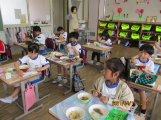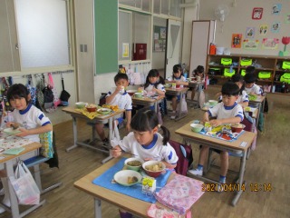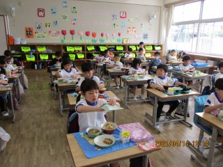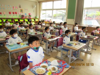 ★食べる前も静かに待つことができました。マスクもきちんとマスク袋に片付けられました。食事中もおしゃべりせずに食べられました。立派な1年生です。(はなまる)
