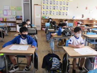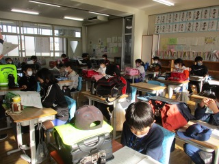 今日の5限目に町別児童会がありました。前半は、毎朝の登校の振り返りを行いました。